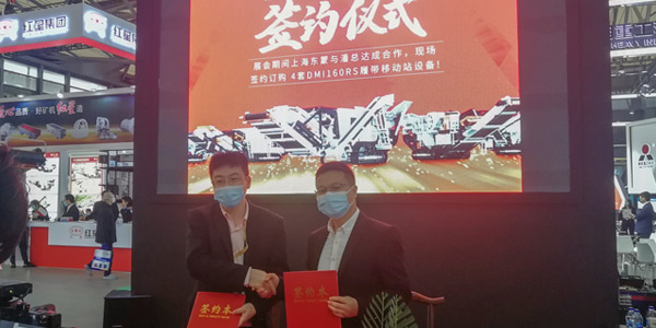 開展首日,上海東蒙與潘總現(xiàn)場簽訂履帶移動站訂單