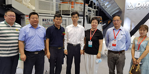 ?中國砂石協(xié)會會長胡幼奕、全國砂石行業(yè)宣傳總監(jiān)王瓊杰、中國砂石協(xié)會副秘書長楊曉東、中國砂石協(xié)會副秘書長張聯(lián)濤、上海石材行業(yè)協(xié)會砂石分會秘書長魏鈺、環(huán)球破碎機網(wǎng)副總商倩等相關(guān)領(lǐng)導(dǎo)參觀東蒙展臺,與上海東蒙董事長買總親切交流并合影。