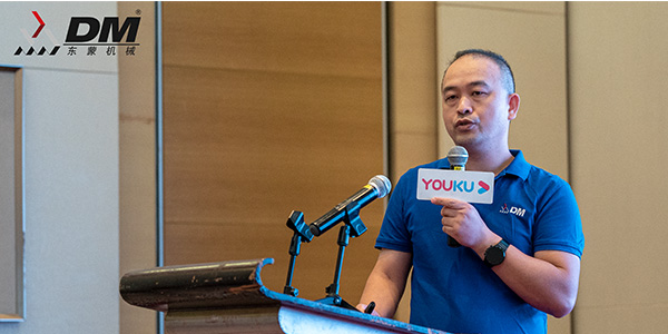 本次發(fā)布會東蒙最新產(chǎn)品推介部分由-上海東蒙高級應(yīng)用工程師嚴剛發(fā)表了精彩的2021東蒙最新主題演講推介及東蒙固定式破碎篩分設(shè)備、履帶式移動站的主題推介發(fā)言,會議現(xiàn)場嚴工更是緊密結(jié)合“雙碳政策”、“兩山理論”的一些列國家政策背景及市場利好,向在場嘉賓現(xiàn)場展示了東蒙破碎篩分設(shè)備在砂石骨料加工、建筑固廢再生、綠色礦山修復(fù)、尾礦利用等方面的應(yīng)用典型案例,首次零距離地向廣東地區(qū)新老客戶生動分享了東蒙在主機制造廠家方面多年以來的技術(shù)經(jīng)驗及品質(zhì)創(chuàng)新,引發(fā)了發(fā)布會現(xiàn)場嘉賓的極大興趣和強烈關(guān)注。
