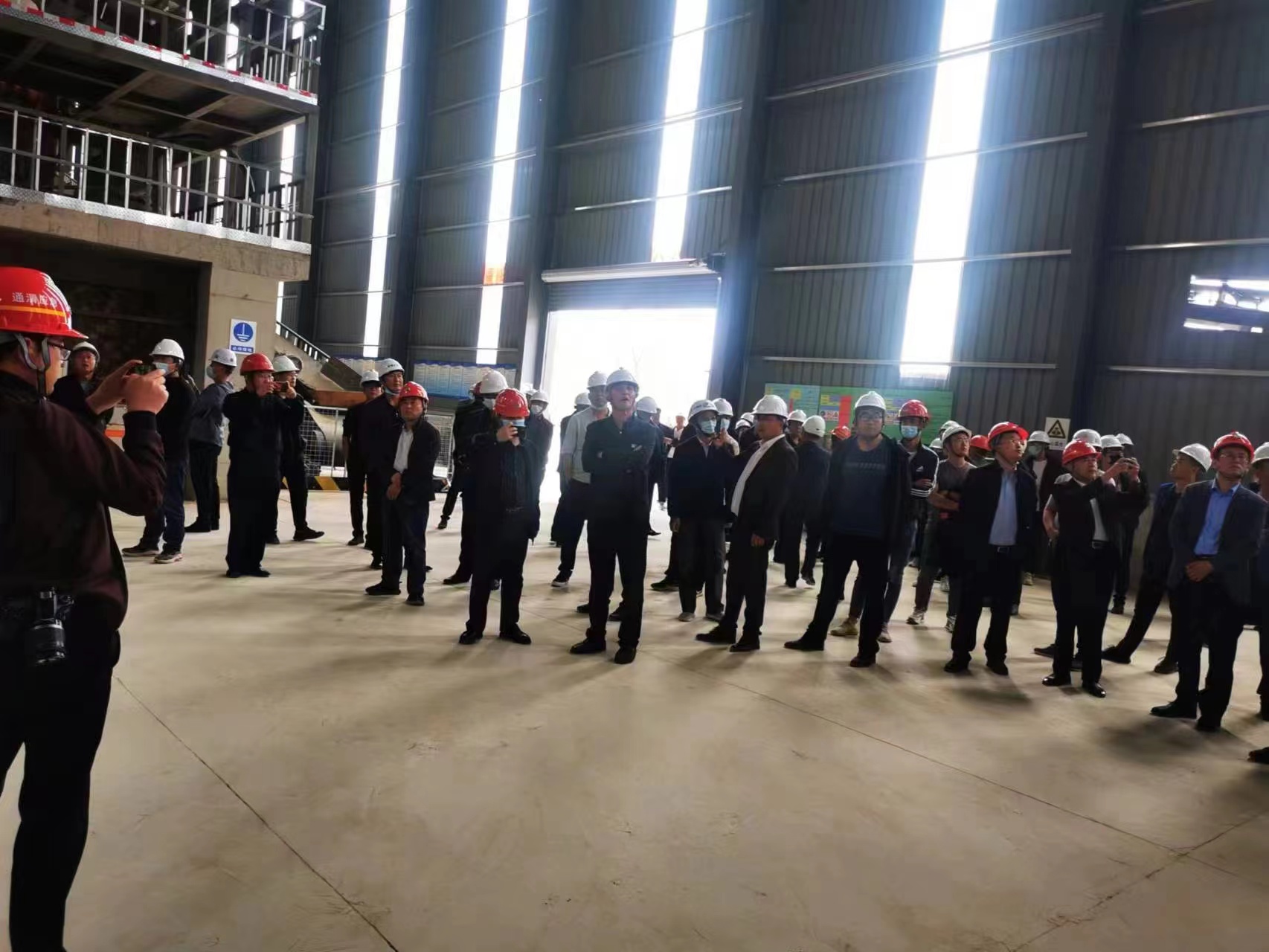 上海東蒙西北營銷中心負(fù)責(zé)人潘總在車間現(xiàn)場(chǎng)為觀摩嘉賓作該產(chǎn)線概況介紹