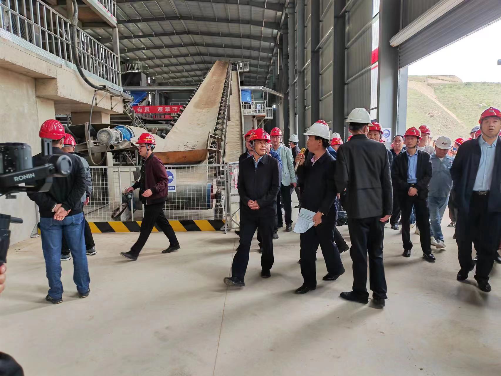 參觀現(xiàn)場(chǎng),定西市應(yīng)急局相關(guān)領(lǐng)導(dǎo)一行發(fā)表講話,充分肯定:“這條生產(chǎn)線目前在當(dāng)?shù)厥亲罡咚疁?zhǔn)的”,“相信該條精品干、濕合用砂石骨料生產(chǎn)線的順利投產(chǎn)必將為當(dāng)?shù)氐木G色礦山礦企建設(shè)作出行業(yè)標(biāo)桿式的先鋒引領(lǐng)作用。”